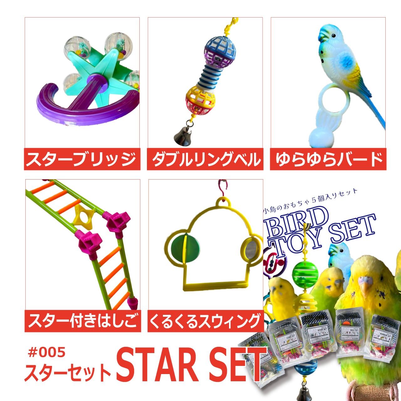 昭和レトロ「小鳥のおもちゃ5個入りセット」